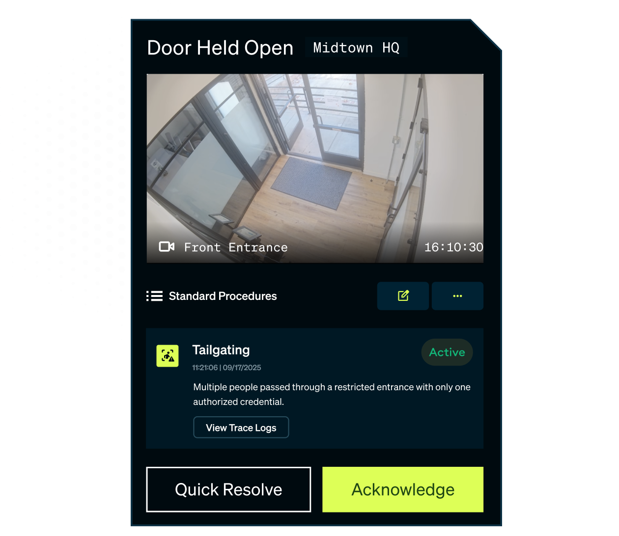 Most security teams manage incidents across a tangle of systems: one for access control alarms, another for video, a separate process for dispatching guards, a different tool for documentation, and a phone call to reach 911. Every handoff is a gap. Every gap costs time.